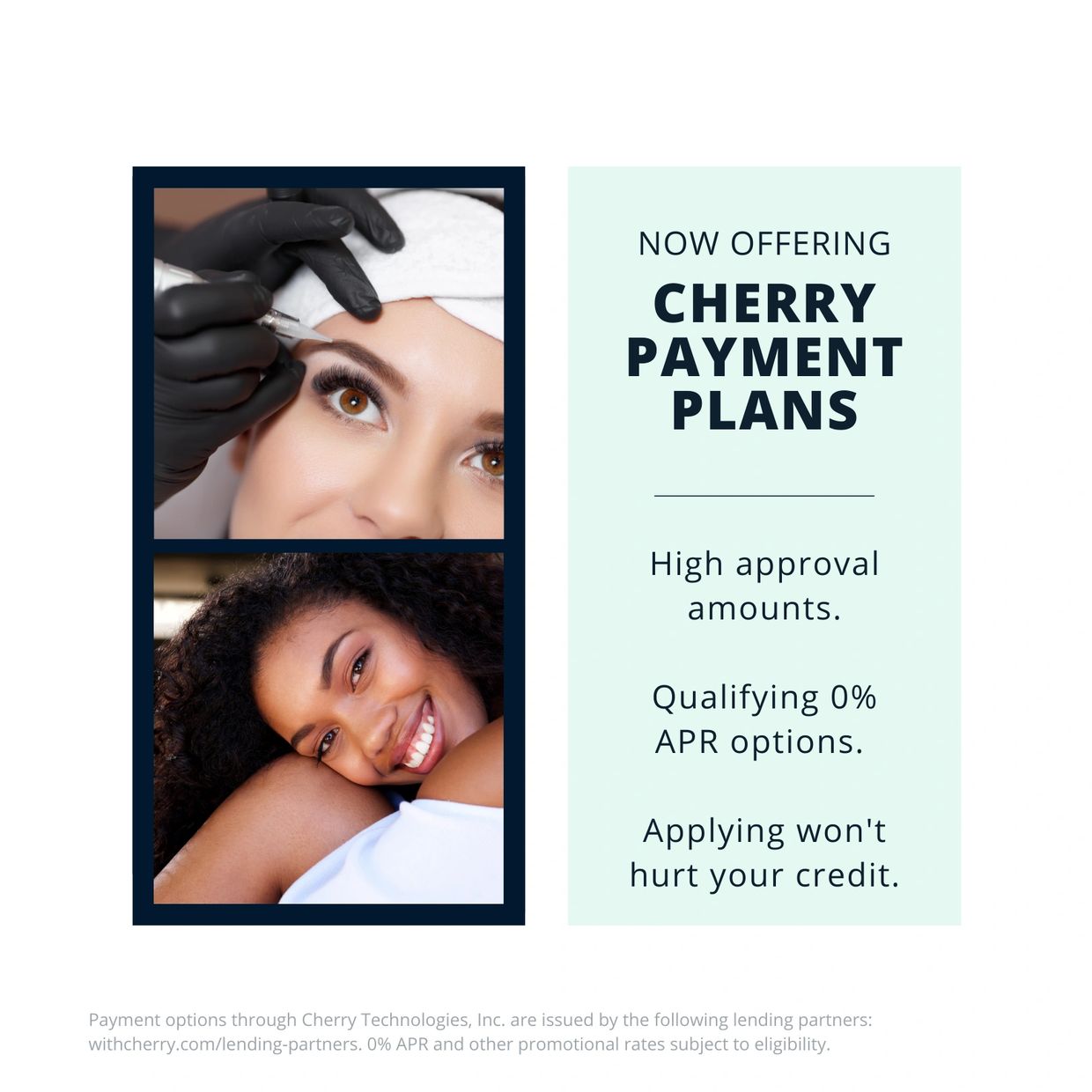 We found the solution to your problem, payment plans! You can now spread your service cost over 3, 6, 9 and even up to 18 months in some cases. Cherry Payment Plans won't hurt your credit score, and most can qualify in less than 60 seconds, even with a low credit rating. Don't let finances stand in the way of your beauty services ever again!